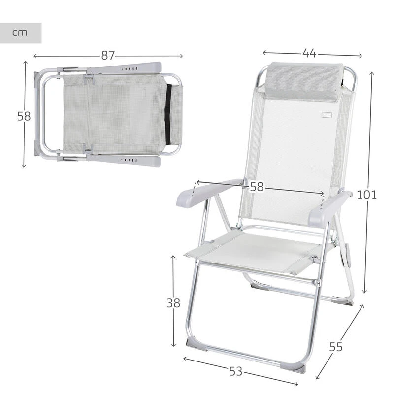 AKTIVE – Chaise Pliante Haute Avec Dossier Haut Réglable 5 Positions, Gris
