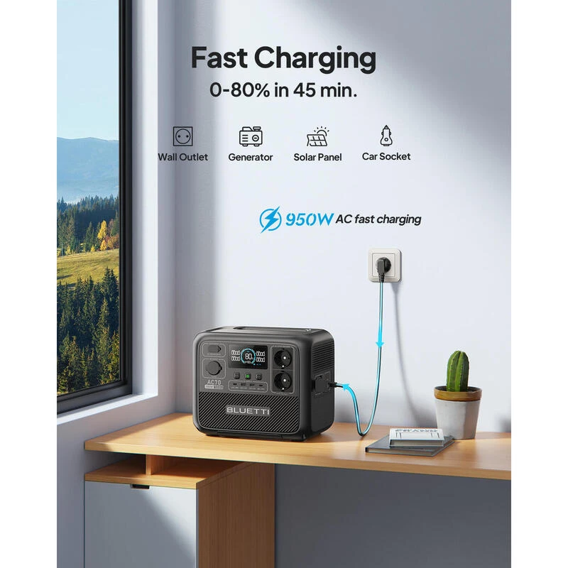 Kit Générateur Solaire BLUETTI AC70+PV120, 768Wh/1000W LiFePO4 Pour Le Camping