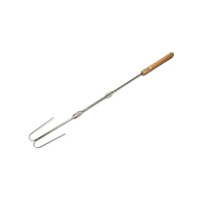 Accessoire pratique pour griller en toute sécurité sur un feu de bois. Avec une poignée en bois extensible pour une prise sûre.