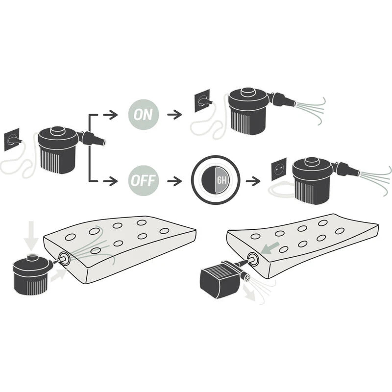 Nos concepteurs campeurs ont conçu cette pompe électrique rechargeable pour gonfler votre matelas de camping sans effort et avec un minimum d’encombrement.Notre motivation ? Vous proposer une pompe électrique compacte pour gonfler vos matelas sans effort ! Avec sa batterie rechargeable, elle rend l’installation de votre camp facile et rapide.