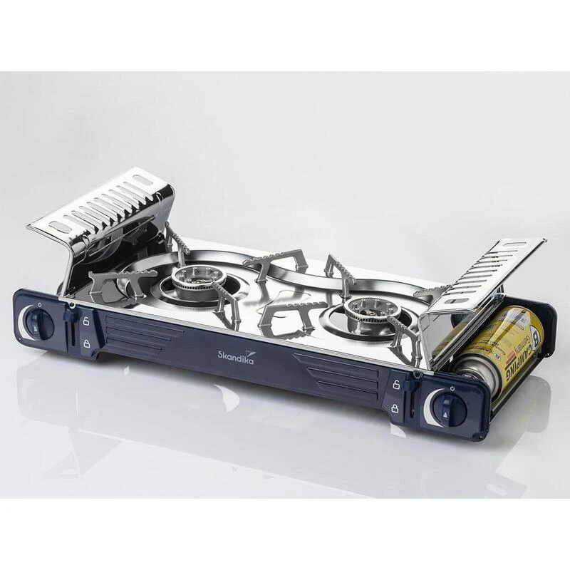 Set Réchaud à Gaz 2 Feux – Skandika Brann – Camping – Allumage Piezo – Mallette